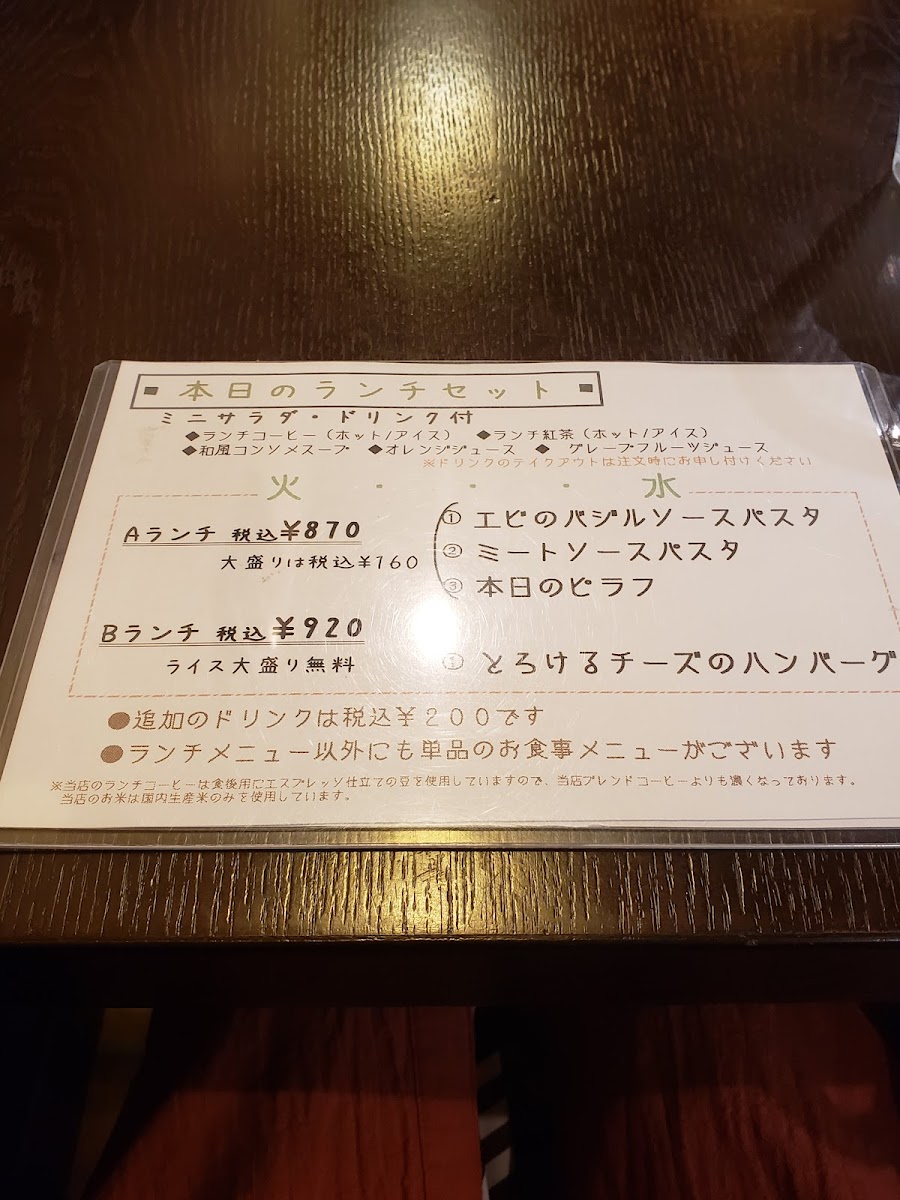 Cafe Hitotoki Menu